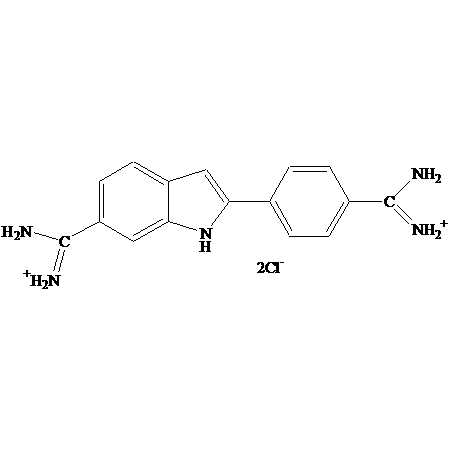 DAPI (4', 6-Diamidino-2-Phenylindole, dihydrochloride) is a popular blue DNA dye that is used as a nuclear counterstain in fluorescence microscopy, chromosome staining and flow cytometry. The dye binds to the minor groove of dsDNA with approximately 20-fold fluorescence enhancement, with higher affinity for A-T rich regions. Also see DAPI dilactate, a more water soluble form of the dye.