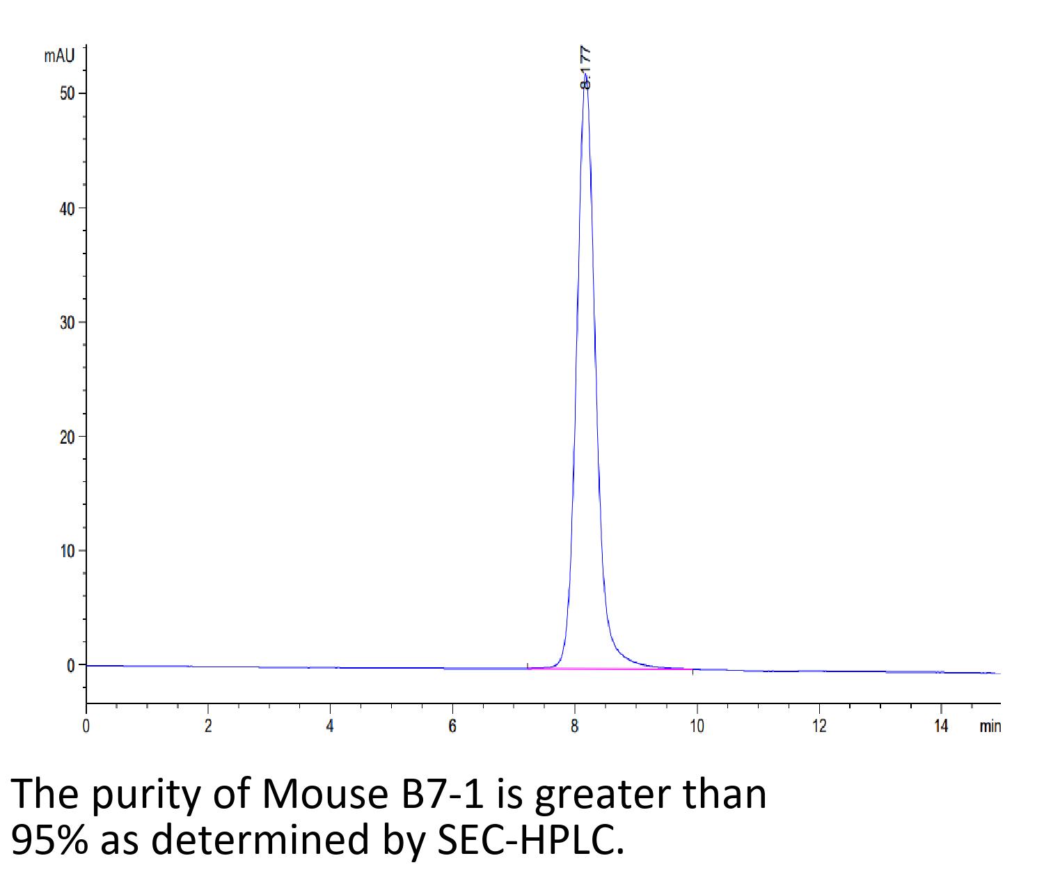 Recombinant Mouse B7-1/CD80 Protein is expressed from HEK293 with His tag at the C-Terminus.It contains Val38-Asn246.