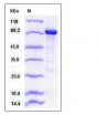 The recombinant human GNB2L1/MBP fusion protein consists of 714 amino acids and has a calculated molecular mass of 78.7 KDa. It migrates as an approximately 70 kDa band in SDS-PAGE under reducing conditions.